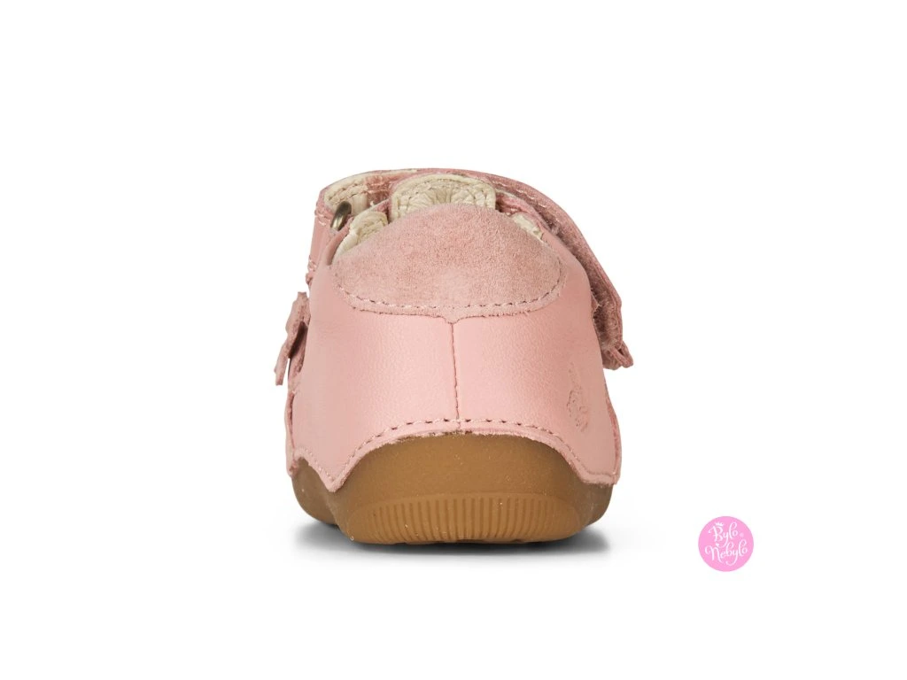 Sandále sú navrhnuté s ohľadom na mäkkosť, strih a flexibilitu, čo je nevyhnutné pre najmenších, ktorí budú sandále často nosiť dlhšiu dobu. Flexibilná, mäkká podrážka dáva dieťaťu voľnosť prirodzeného pohybu, zatiaľ čo odolný gumový nos chráni nohy pri plazení, vstávaní a nácviku stoja a chôdze. Gumový nos je extra robustný detail, ktorý chráni malé prsty počas hry a prieskumu.