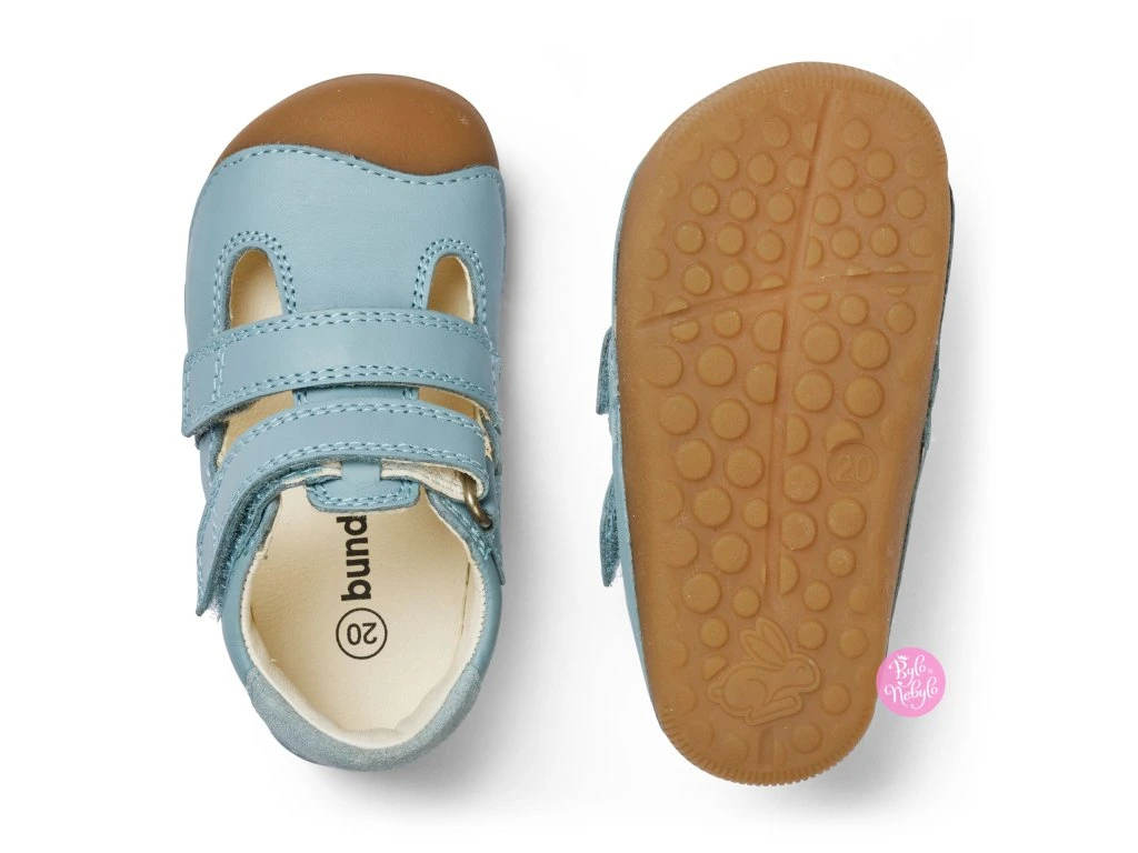 Sandále sú navrhnuté s ohľadom na mäkkosť, strih a flexibilitu, čo je nevyhnutné pre najmenších, ktorí budú sandále často nosiť dlhšiu dobu. Flexibilná, mäkká podrážka dáva dieťaťu voľnosť prirodzeného pohybu, zatiaľ čo odolný gumový nos chráni nohy pri plazení, vstávaní a nácviku stoja a chôdze. Gumový nos je extra robustný detail, ktorý chráni malé prsty počas hry a prieskumu.