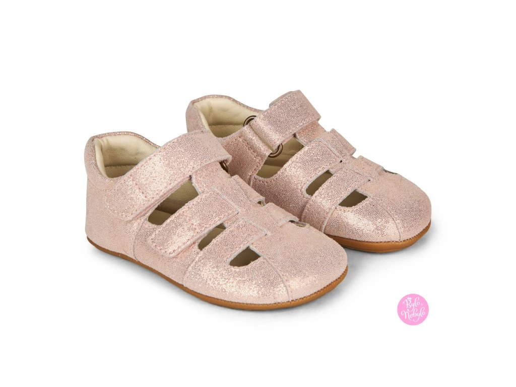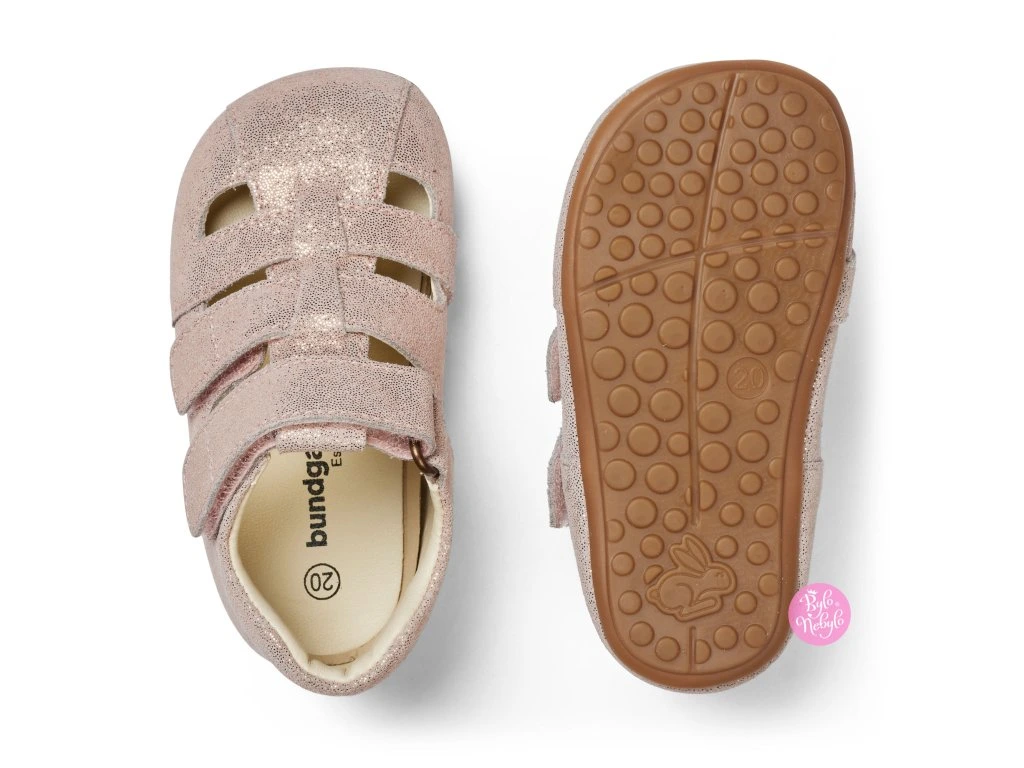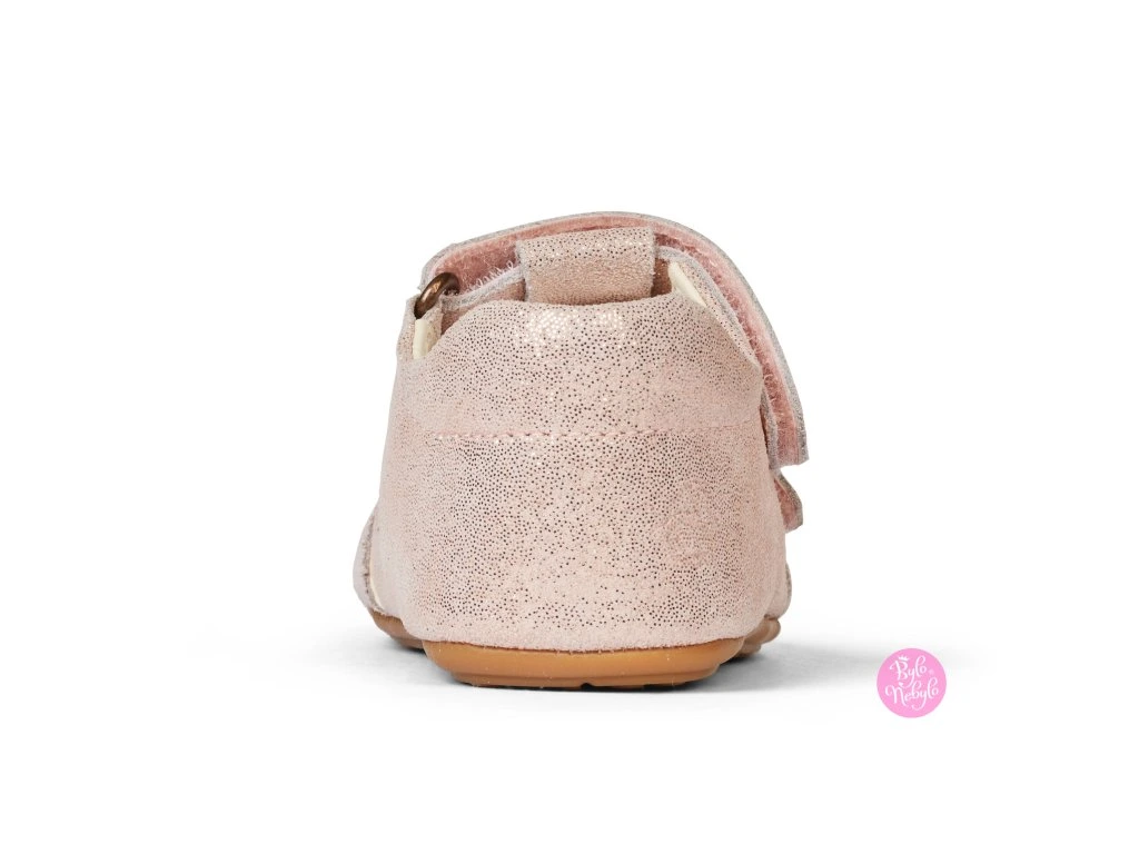 Sandále má tenkú, flexibilnú gumovú podrážku, ktorá umožňuje dieťaťu voľný pohyb, zatiaľ čo pevná päta zaisťuje stabilné držanie na nohe. Táto konštrukcia pomáha optimálne podopierať malé nôžky, čo je ideálne pri nácviku samostatného státia a pohybu.