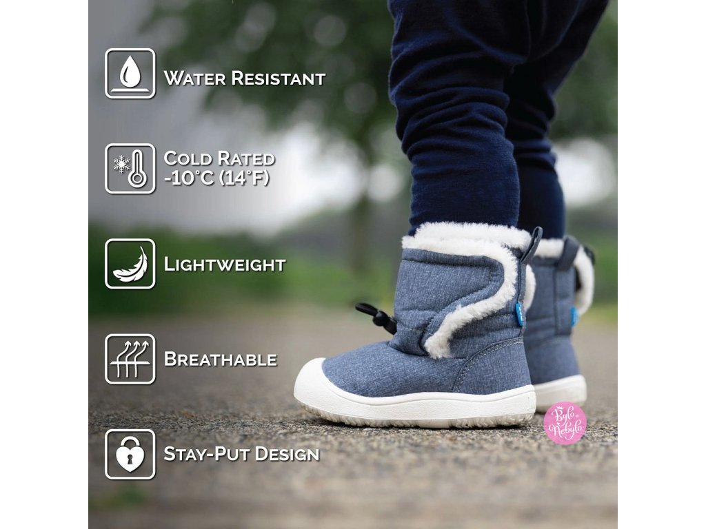 Tieto pohodlné snehule pre batoľatá sú ako stvorené pre prvé krôčiky dieťaťa v snehu! Malé prsty na nohách zostanú príjemne teplé vďaka vodeodolnej a vetruodolnej škrupine, podšívke z umelej kožušiny a zateplenej strednej vrstve. Tieto zimné topánky sú ideálne pre akékoľvek dobrodružstvo, od batolenia sa na zasnežených chodníkoch až po pohodlie pri jazde v kočíku! Navrhnuté pre bezpečnosť a zdravý vývoj nôh s priľnavou a flexibilnou gumovou podrážkou a špičkami na extra ochranu prstov. Váš prvý chodec si zamiluje, že sa konečne môže zapojiť do vonkajších zimných radovánok!